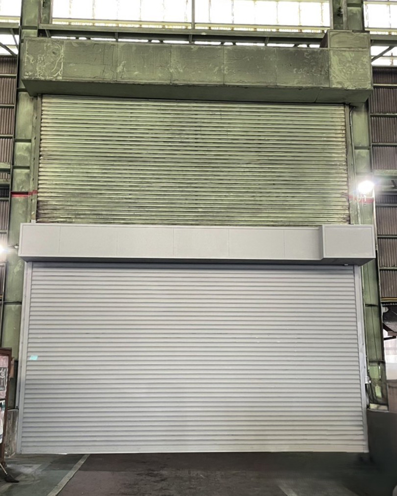 既存の重量シャッターを解体するのがかなり大変な収まりと大きさでしたので、今回既存の重量シャッターを残した状態で、その下に新しく重量シャッターの取付を行いました。